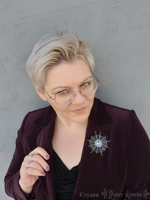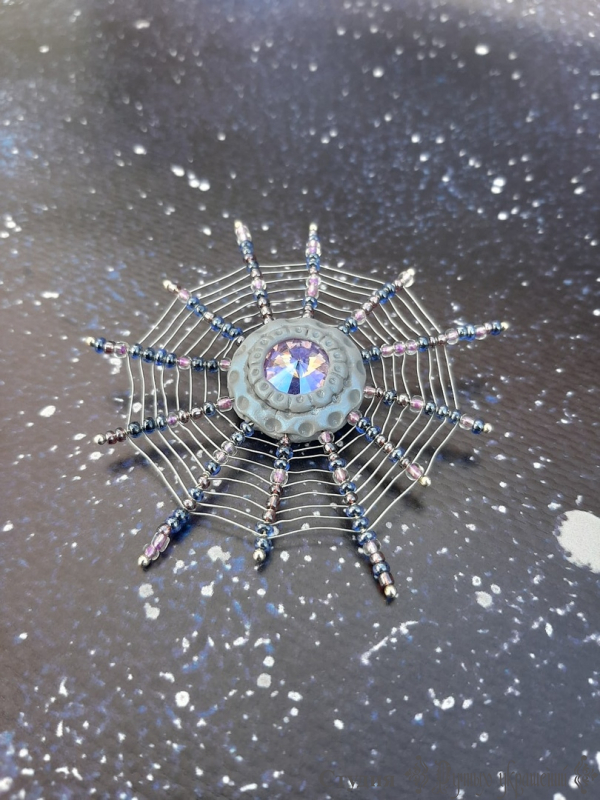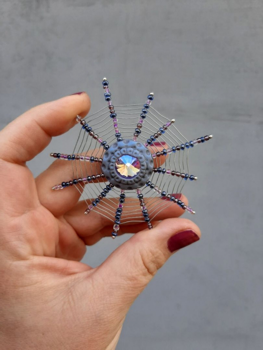 Материалы: полимерная глина, стеклянный кристалл, бисер, металлическая основа.