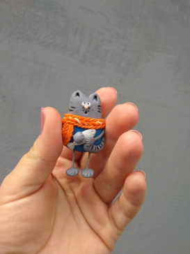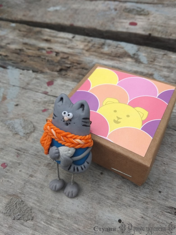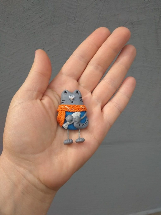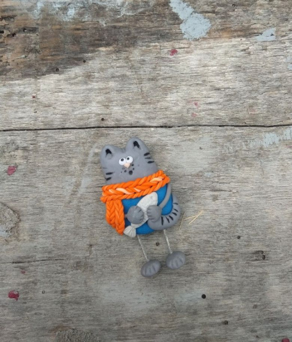 Брошка"Котик в шарфі"