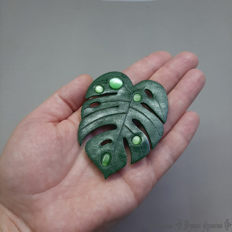 Матеріали: полімерна глина, скляні кабошони, металева застібка