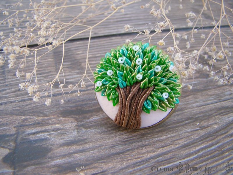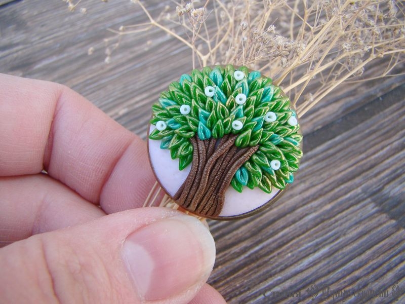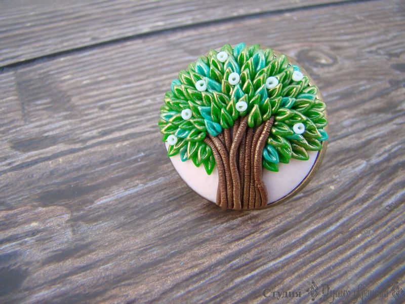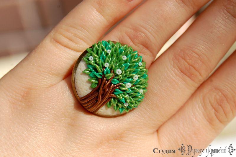 Оригинальное кольцо из полимерной глины. Каждый листочек вылеплен вручную.