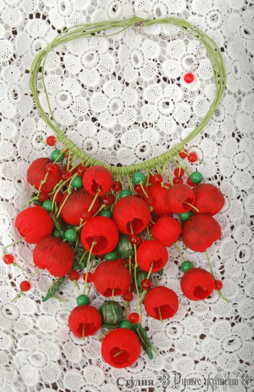 Материалы: полимерная глина, хлопковый шнур, стеклянные и пластиковые бусины, фурнитура