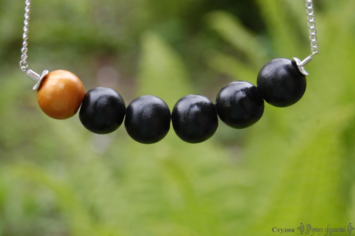 Материалы: деревянные бусины, акриловая краска, цепь, фурнитура
