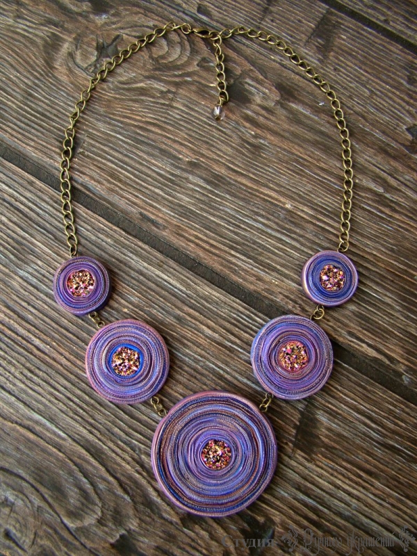 Материалы: полимерная глина, имитация друзы, фурнитура бронзового цвета