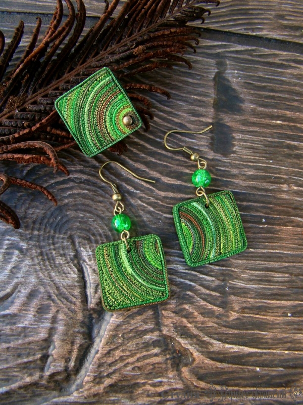 Материалы: полимерная глина, стеклянные бусины, фурнитура бронзового цвета