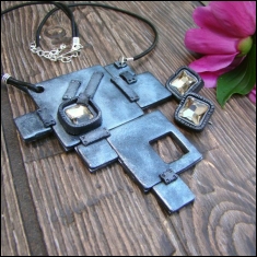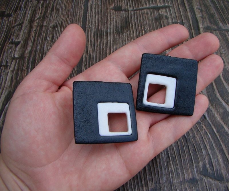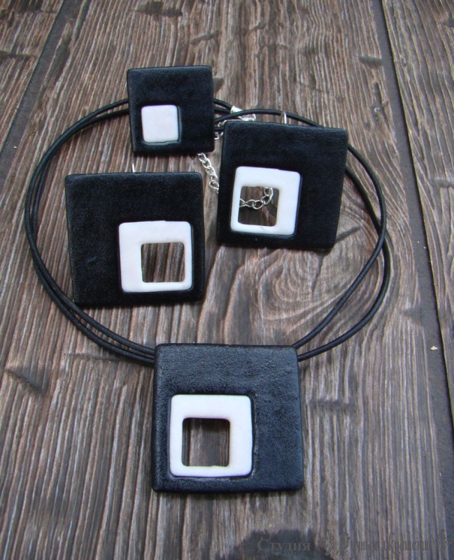 Размер квадратов 4х4 см (серьги, кулон), 3х3 см (кольцо)
