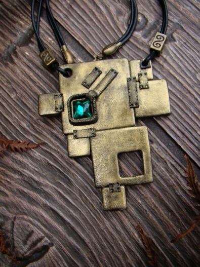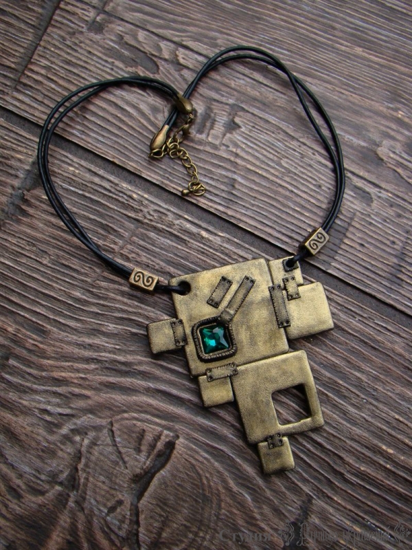 Материалы: полимерная глина, кристалл "риволи", кожаный шнурок, фурнитура