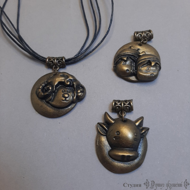 Матеріали: полімерна глина, бавовняний шнурок, фурнітура