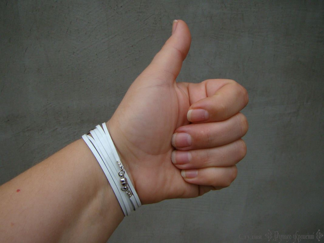 Длина 110 см, расчитан на запястье обхватом 16-18 см. Если у вас другой размер, сообщите, сделаем по вашему размеру.