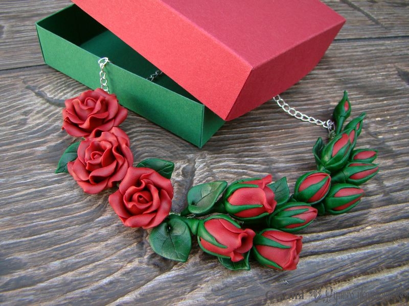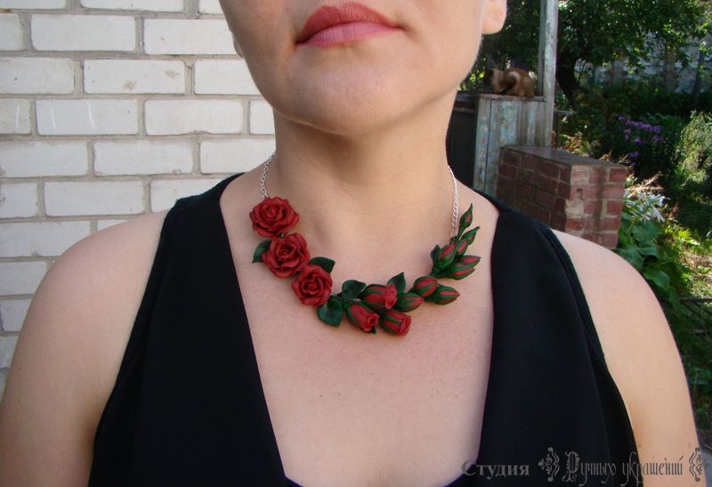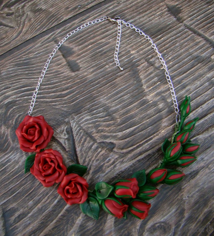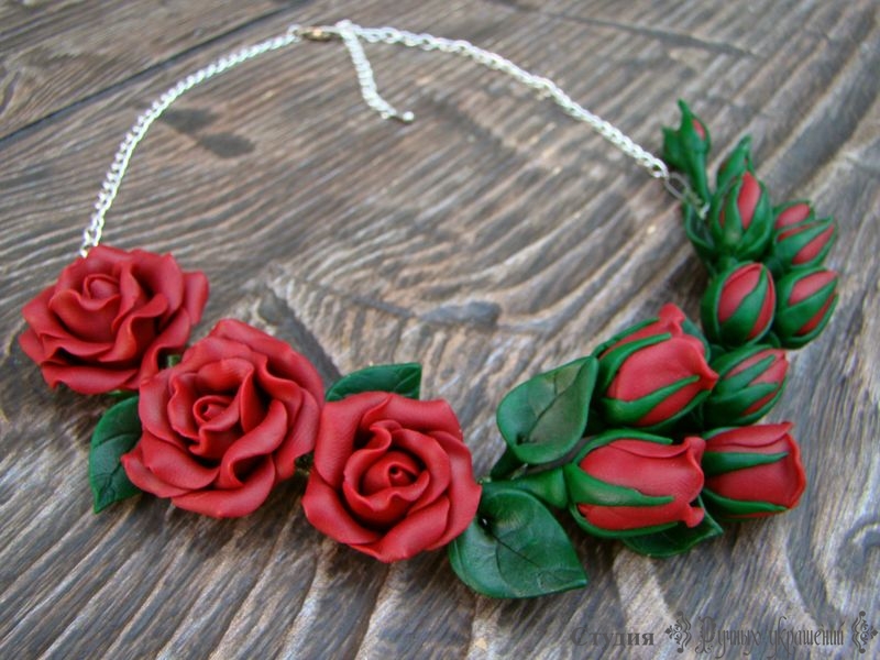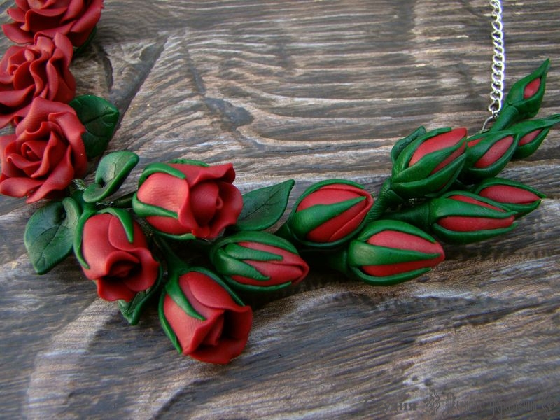 Шикарное колье с розами, модного цвета "марсала". Украшение изумительно смотрится на шее.