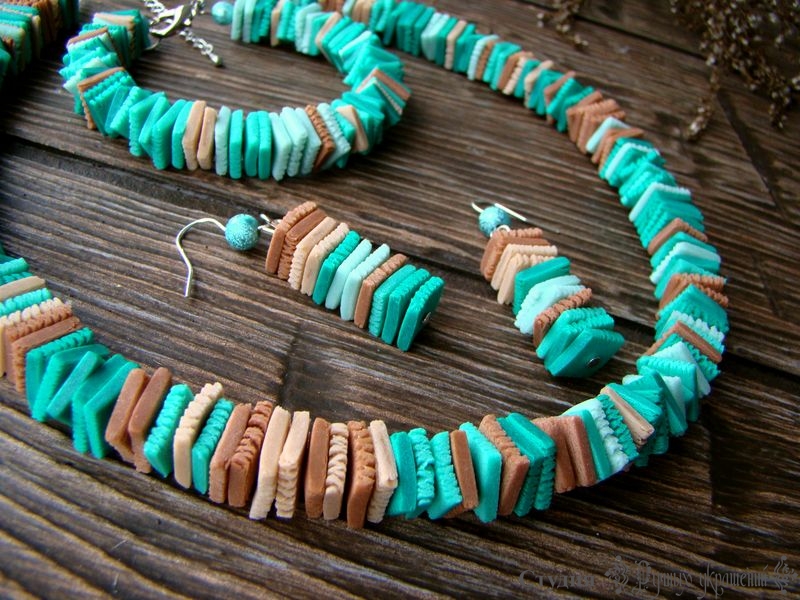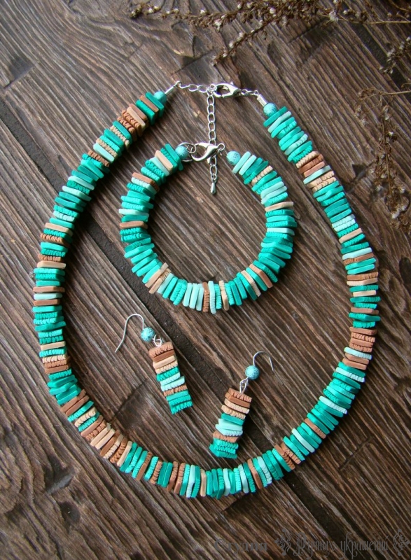 Длина бус 45+6 см, браслет 20 см, серьги 5 см