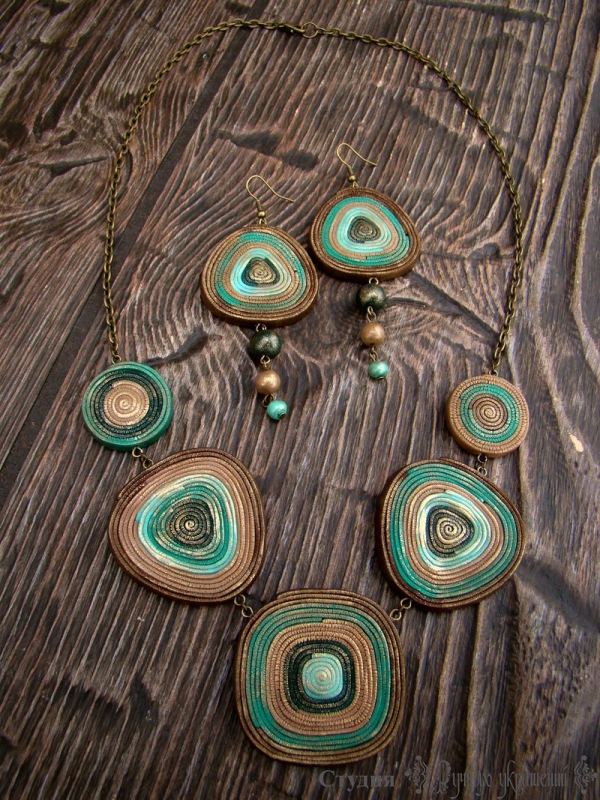 Комплект украшений состоит из колье и серег. Очень мягкое и гамоничное сочетание цветов. Украшение будет уместно и каждый день и на праздник.