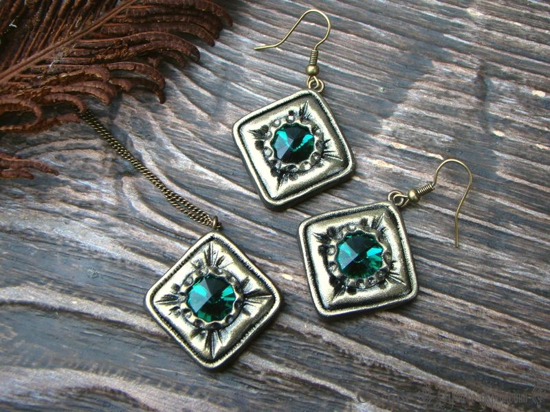 Материалы: полимерная глина, стеклянные кристаллы "риволи", фурнитура