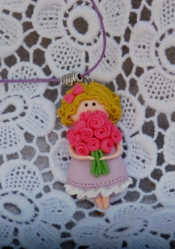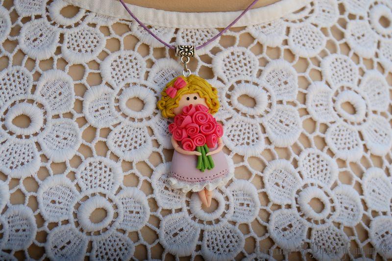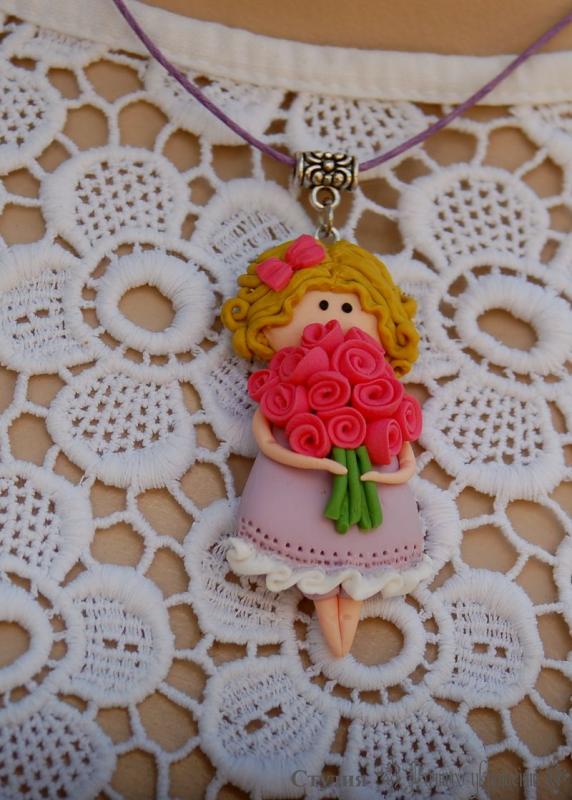 Девочка с букетом роз на шею. Очарование детства в симпатичной подвеске.