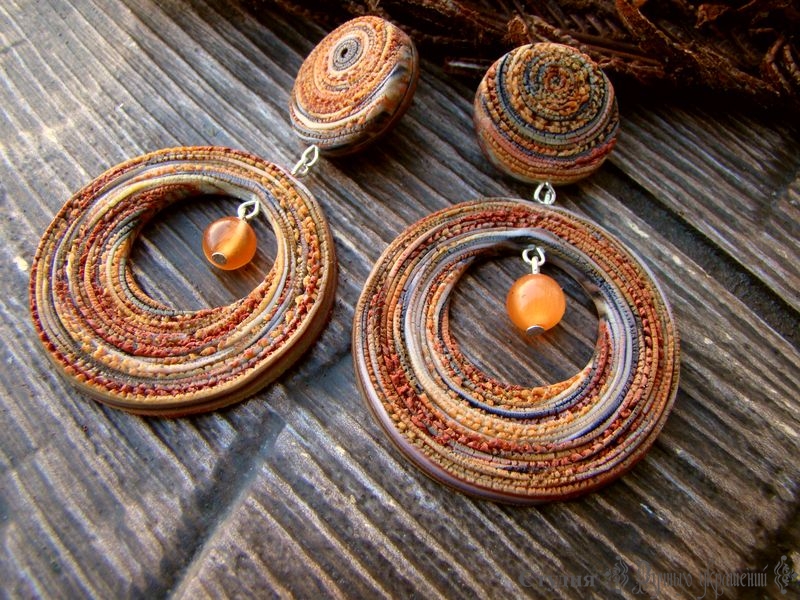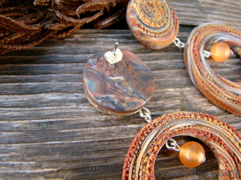 Материалы: полимерная глина, бусины кошачьего глаза, фурнитура