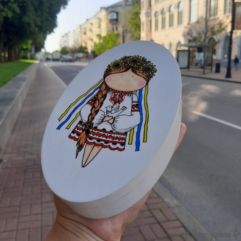 Шкатулка з авторським малюнком. Виставлена як зразок, можливість виготовлення на замовлення залежить від наявності матеріалу.