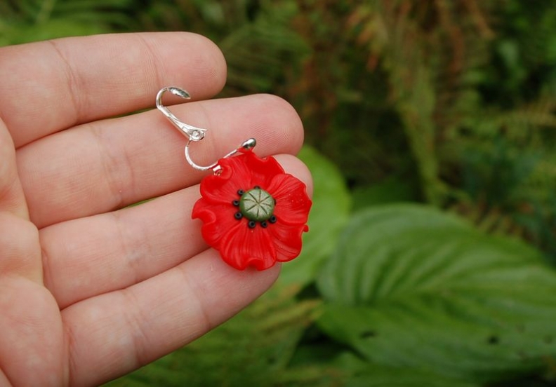 Серьги в виде цветков мака. Яркие, легкие, летние.