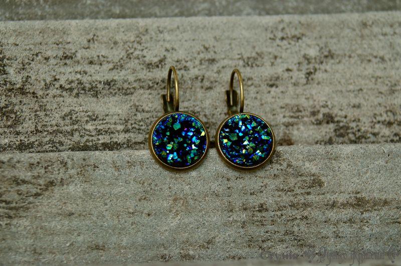Маленькие сережки с мерцающими красталлами. Это не камень, как может показаться, но выглядит очень красиво и натурально. Напоминает друзу агата. Варианты оправы могут быть разными: серебристого и бронзового цвета (на выбор).