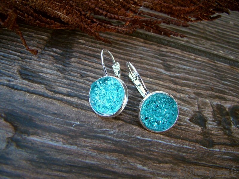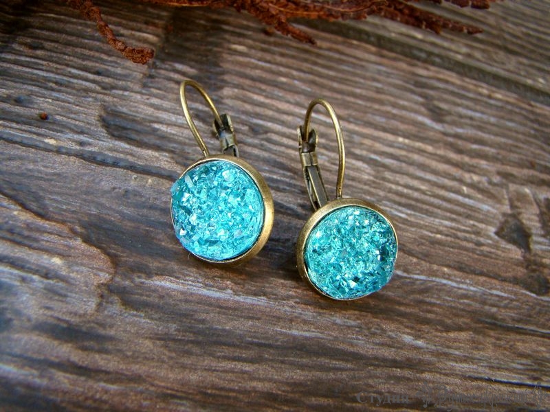 Маленькие сережки с мерцающими красталлами. Это не камень, как может показаться, но выглядит очень красиво и натурально. Напоминает друзу агата. Варианты оправы могут быть разными: серебристого и бронзового цвета (на выбор).