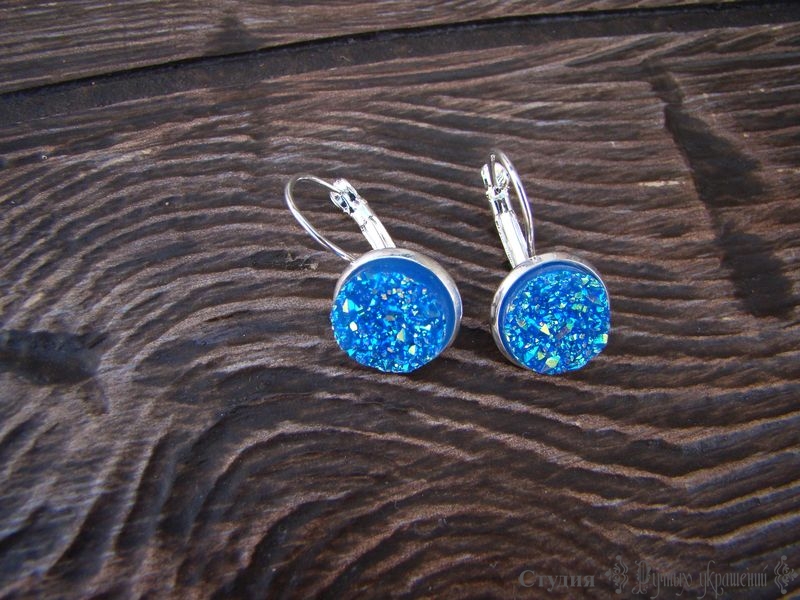 Маленькие сережки с мерцающими красталлами. Это не камень, как может показаться, но выглядит очень красиво и натурально. Напоминает друзу агата. Варианты оправы могут быть разными: серебристого и бронзового цвета (на выбор).